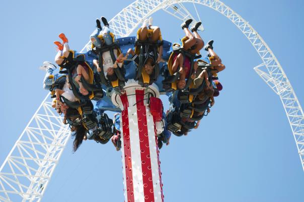Explorez l'excitation de Sindidance, un manège captivant qui vous propulse à une hauteur impressionnante. Ses bras catapultes vous entraînent dans un balancier à 120° ou 360°, combiné à une rotation complète de la nacelle, offrant une expérience pleine de sensations fortes.